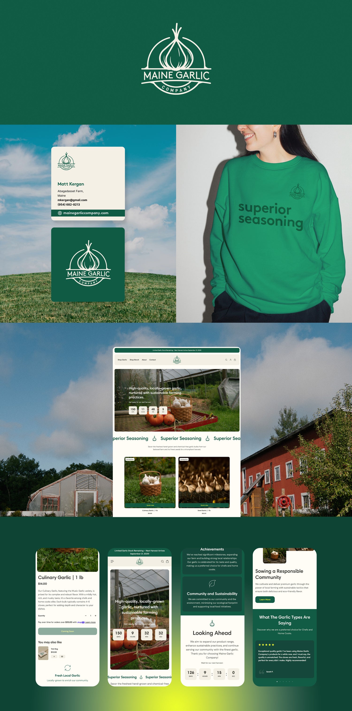 Maine Garlic Company now has a professional brand presence and an intuitive online store that enhances both sales and customer engagement. The new website seamlessly connects their farm with a wider audience, allowing garlic lovers to purchase fresh, hand-grown garlic year-round—whether at markets or delivered to their doorstep.